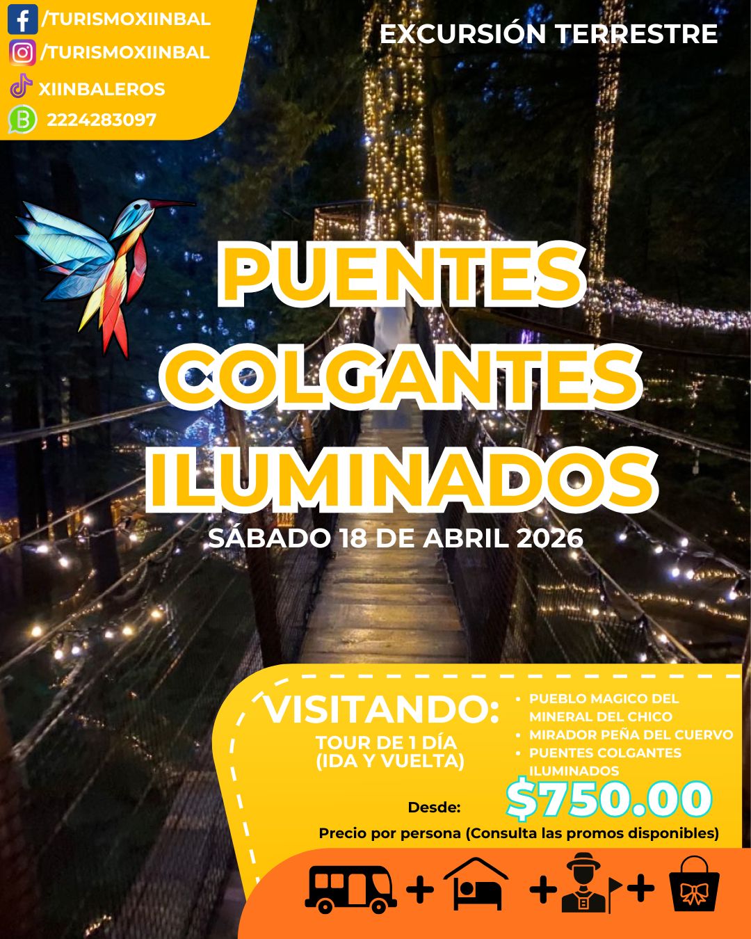 PUENTES COLGANTES ILUMINADOS EN MINERAL DEL CHICO & PEÑA DEL CUERVO